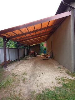 К дому примыкают навес под машины площадью 56 кв. м. и терасса площадью приблизительно 28 кв. м. (с навесом).