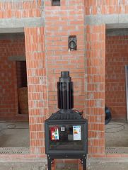 Стены - керамический камень, 375 мм - несущие, 250мм и 125 мм - перегородки. Фронтоны чердака 250мм газоблок. Перекрытие 1 го этажа - ж/б плиты, перекрытие 2-го этажа - брус.