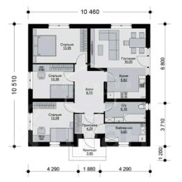 • Удобная планировка: кухня-гостиная 25 м² с панорамными дверями и выходом на террасу, три спальни (14 м², 12 м², 10,3 м²) и просторная прихожая 14 м² с нишей под шкаф.