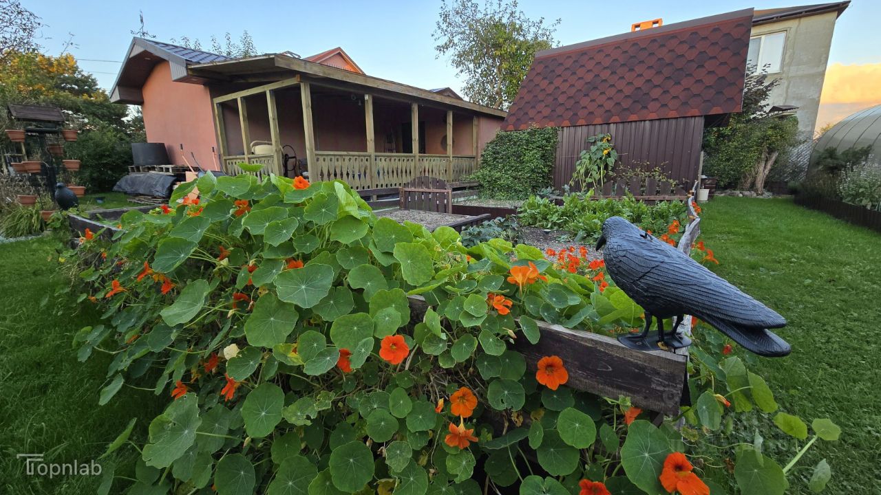 - земля обработана, удобрена , засажена культурными и декоративными расстениями.