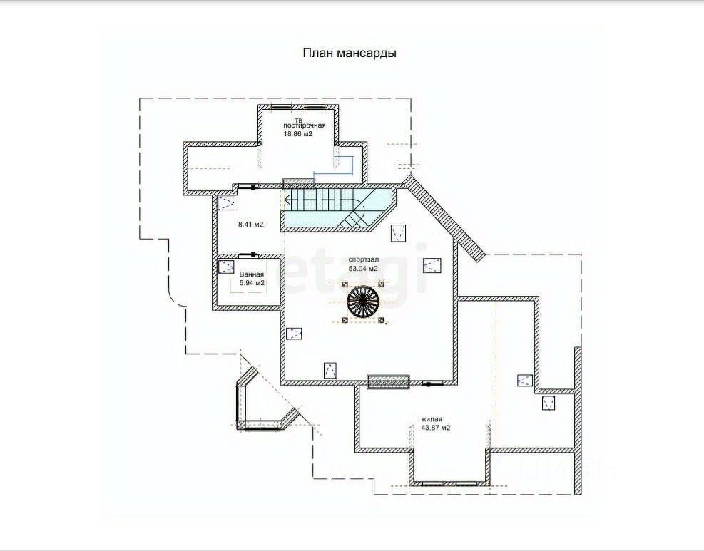 С мансарды винтовая лестница ведет на смотровую площадку-башню.