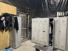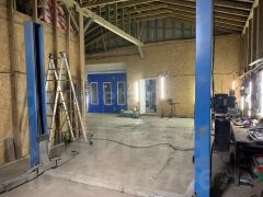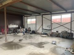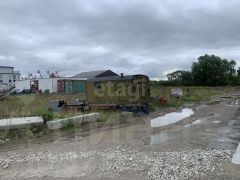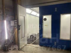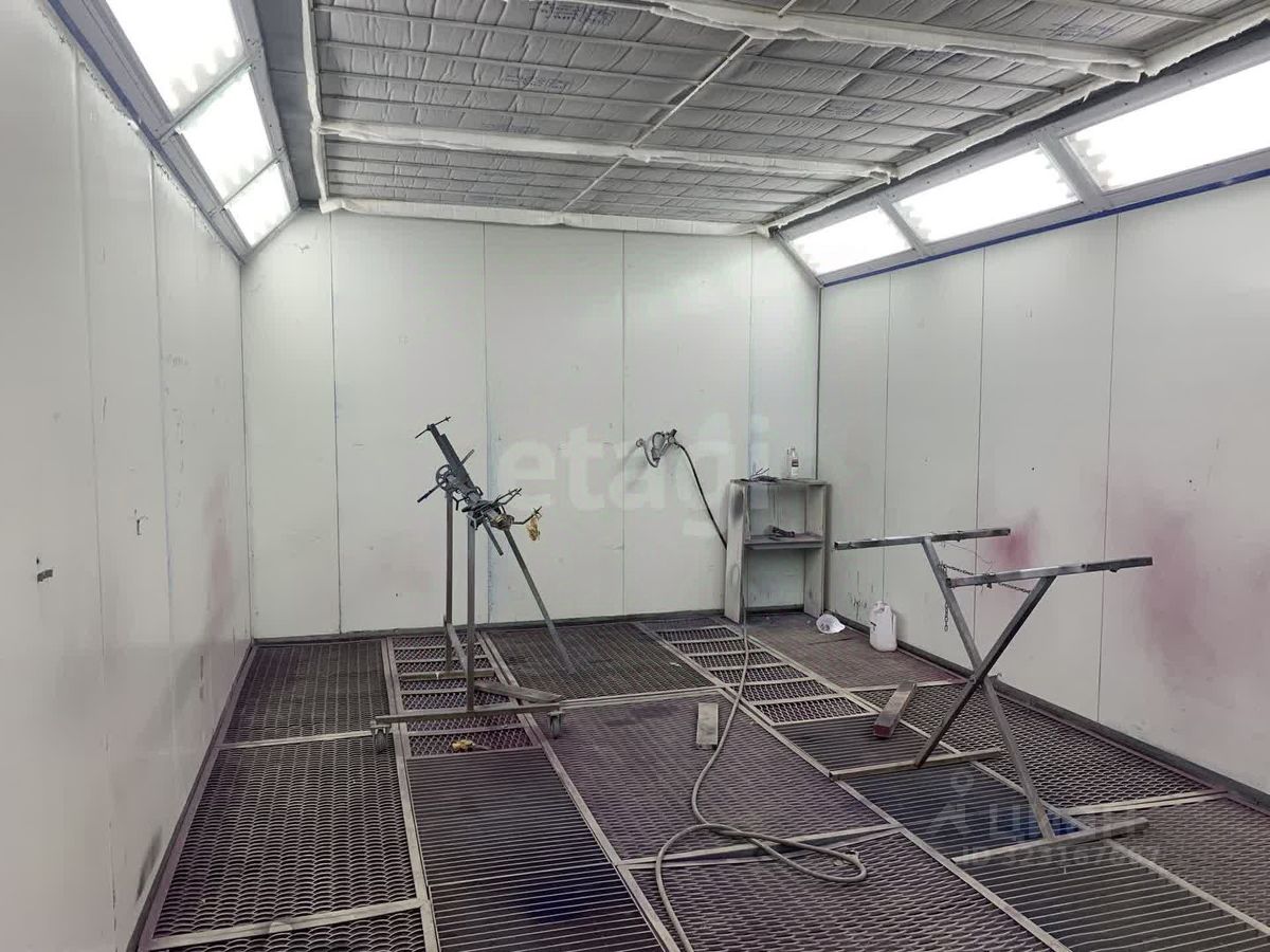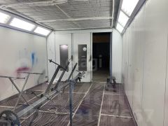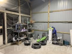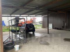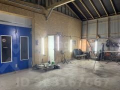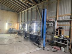 На участке имеются строение общей площадью 450м2 из них 120м2 крытой площади. Электричество 15 кВт. Ранее использовалось как автосервис, есть подъёмник на 4т., покрасочный бокс (дизельный), хоз помещения, теплый пол (электро котёл) в раздевалке и комнате приема пищи. Вентиляция в помещении. Частично остаются инструменты. Круглосезонные подъездные пути, парковка. На территории уложены бетонные плиты.