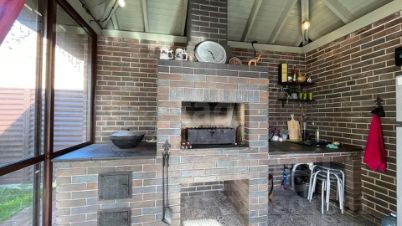 - Остеклённая беседка 20 м² с зоной барбекю и отдыха