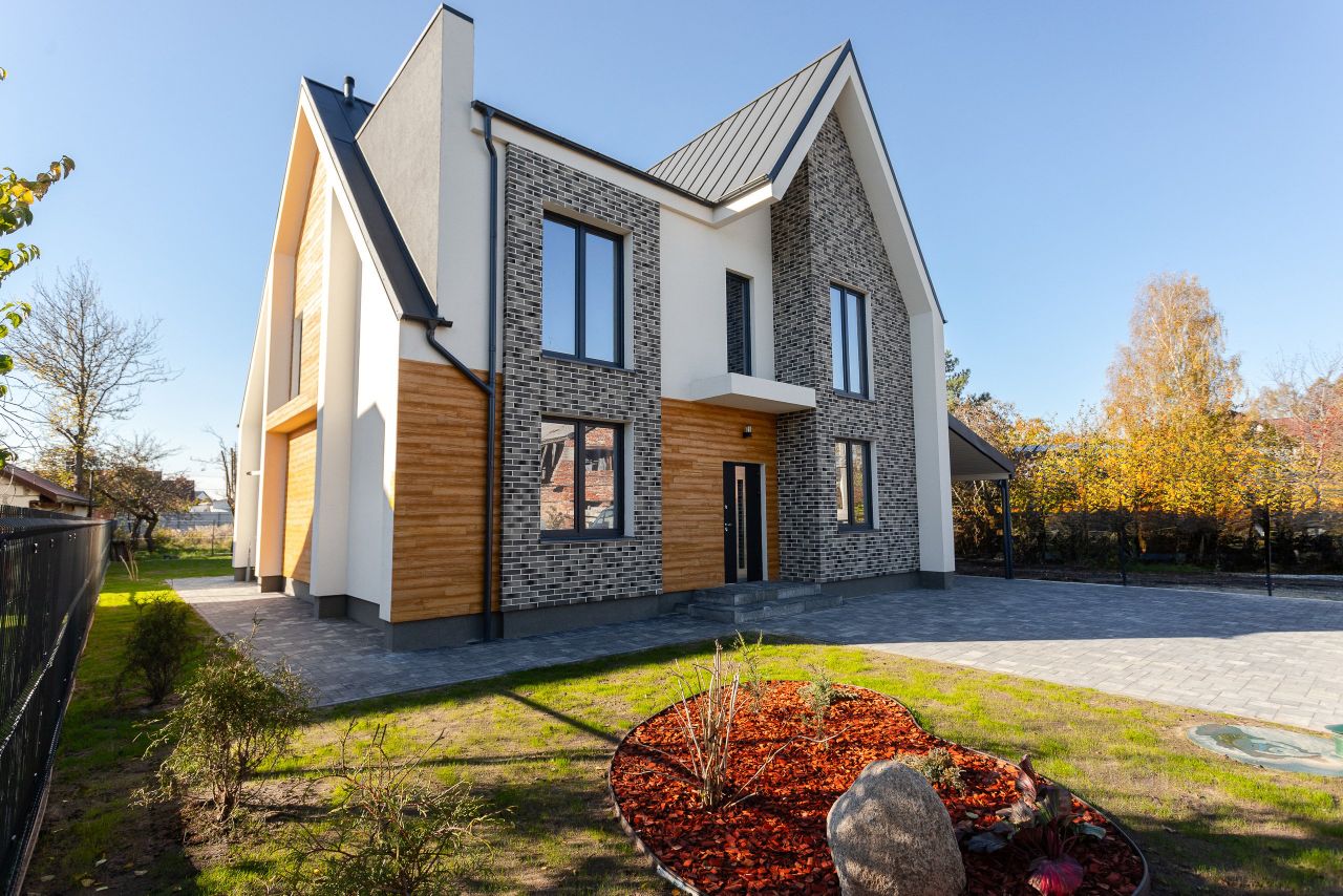 - Современная кровля из фальцевой системы RoofTop Mate с металлом толщиной 0.55 мм, дополненная польской водосточной системой.