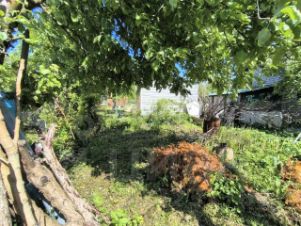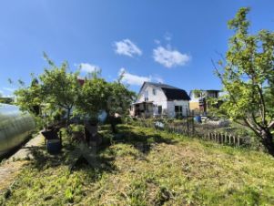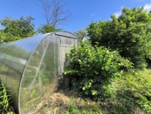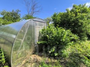 На участке растут плодовые деревья,цветы.Есть теплица.