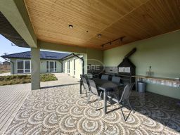 Крытая терраса оборудована рабочей поверхностью из керамогранита, печью - мангалом, мойкой.