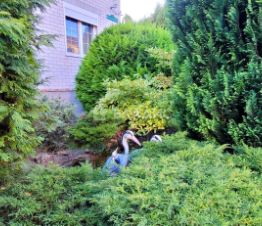•Взрослые обильно растущие туи и декоративные цветущие кустарники (гортензии, рододендрон)