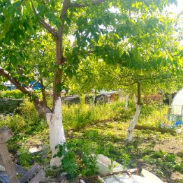 На территории дома прекрасный сад с плодовыми деревьями и цветами, 3 парника.