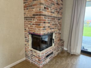 Большая кухня-гостиная 60 м² с настоящим дровяным камином, обложенным кирпичом — идеальное место для семейных вечеров.