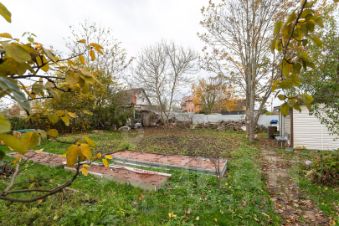 Сад с плодовыми деревьями : грецкий орех , яблони , груша , виноград и т.д. Участок большой , есть места для строительства дома и организации зоны отдыха .