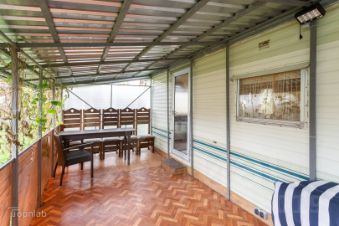 На участке расположен благоустроенный трейлер - 30м , небольшая баня , теплица , крытая зона барбекю , два колодца . Хорошие подъездные пути .
