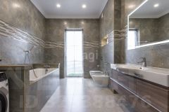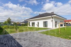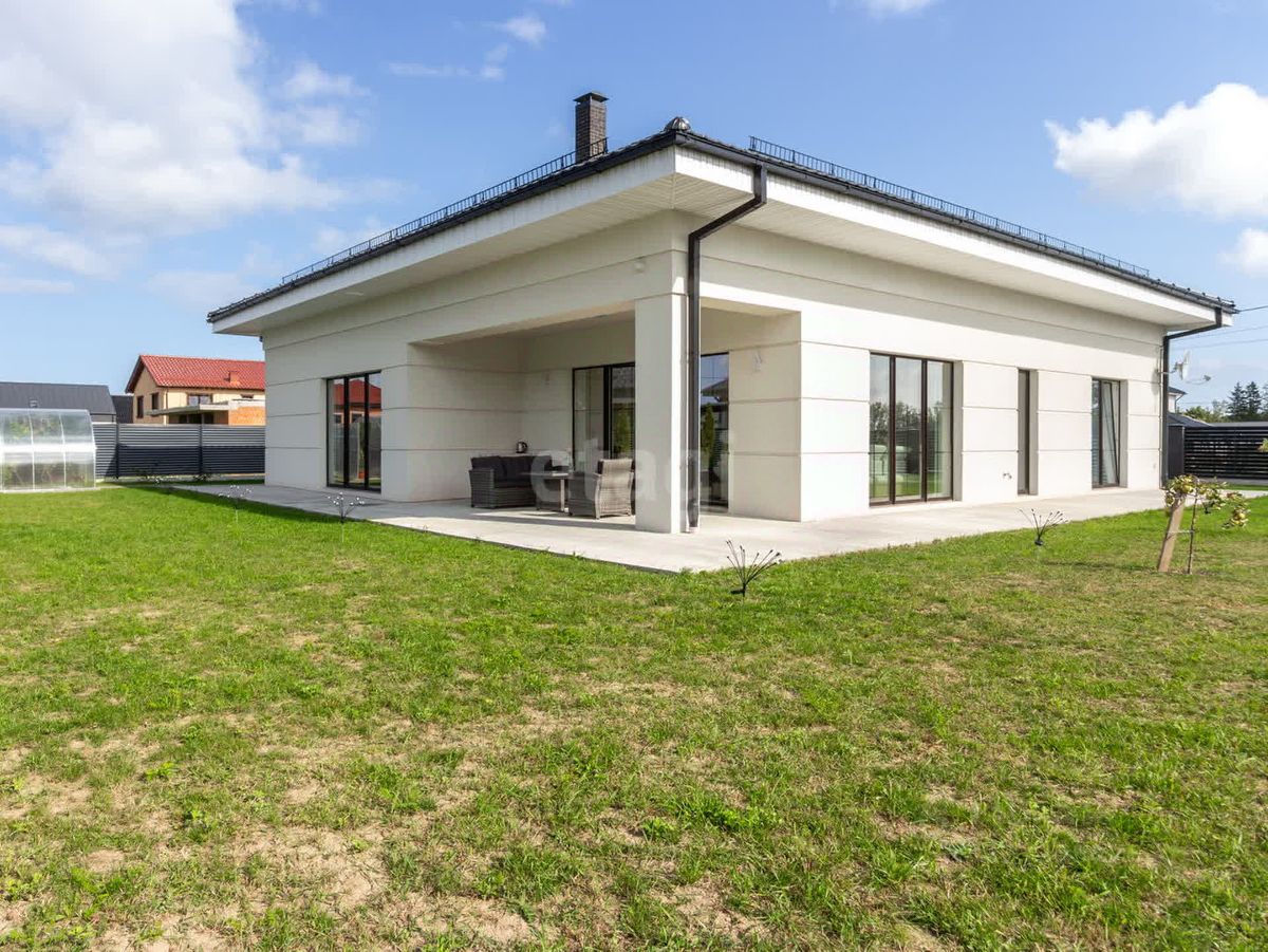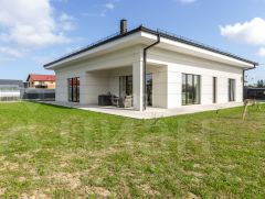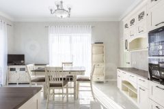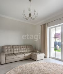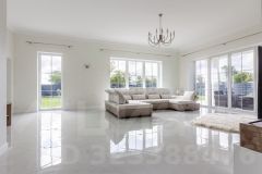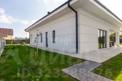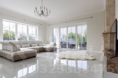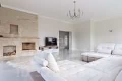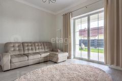 На первом есть этаже подогрев полов. Высота потолков 3,5 метра. Из просторной гостинной, площадью 49 м2 выход в кухню и на открытую террасу в сад. В доме еще есть две отдельных комнаты, два санузла. Межкомнатные двери деревянные из ясеня.