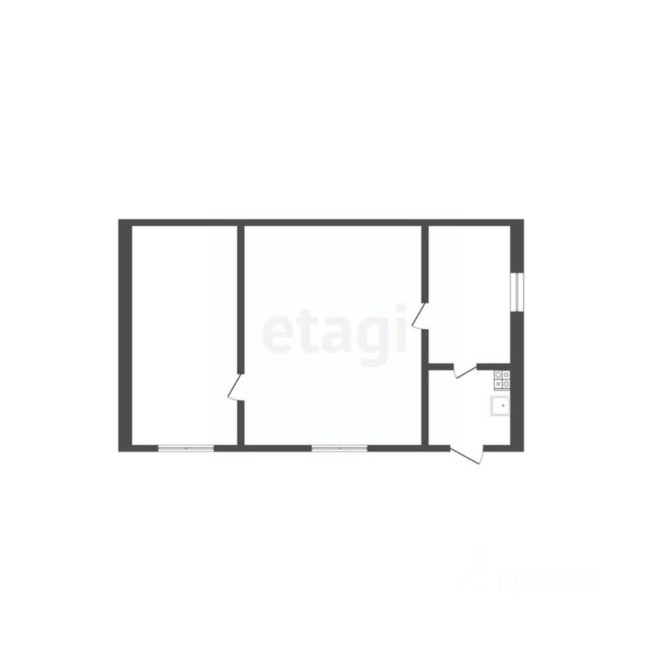 Общая площадь квартиры 48 м². Комнаты смежные, большой зал и спальня, кухня 7 м². Окна комнат выходят на юг в сторону реки. Окно кухни смотрит на восток.