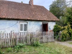 Одноэтажный, кирпичный дом довоенной постройки с  черепичной крышей.