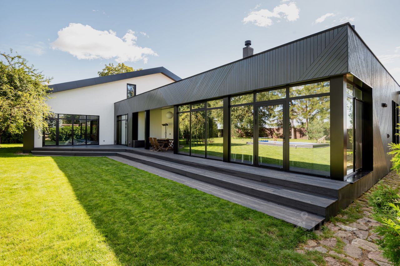 Архитектура объединяет две части — одноэтажную и двухэтажную: лаконичные линии, большие окна, максимум света и воздуха.