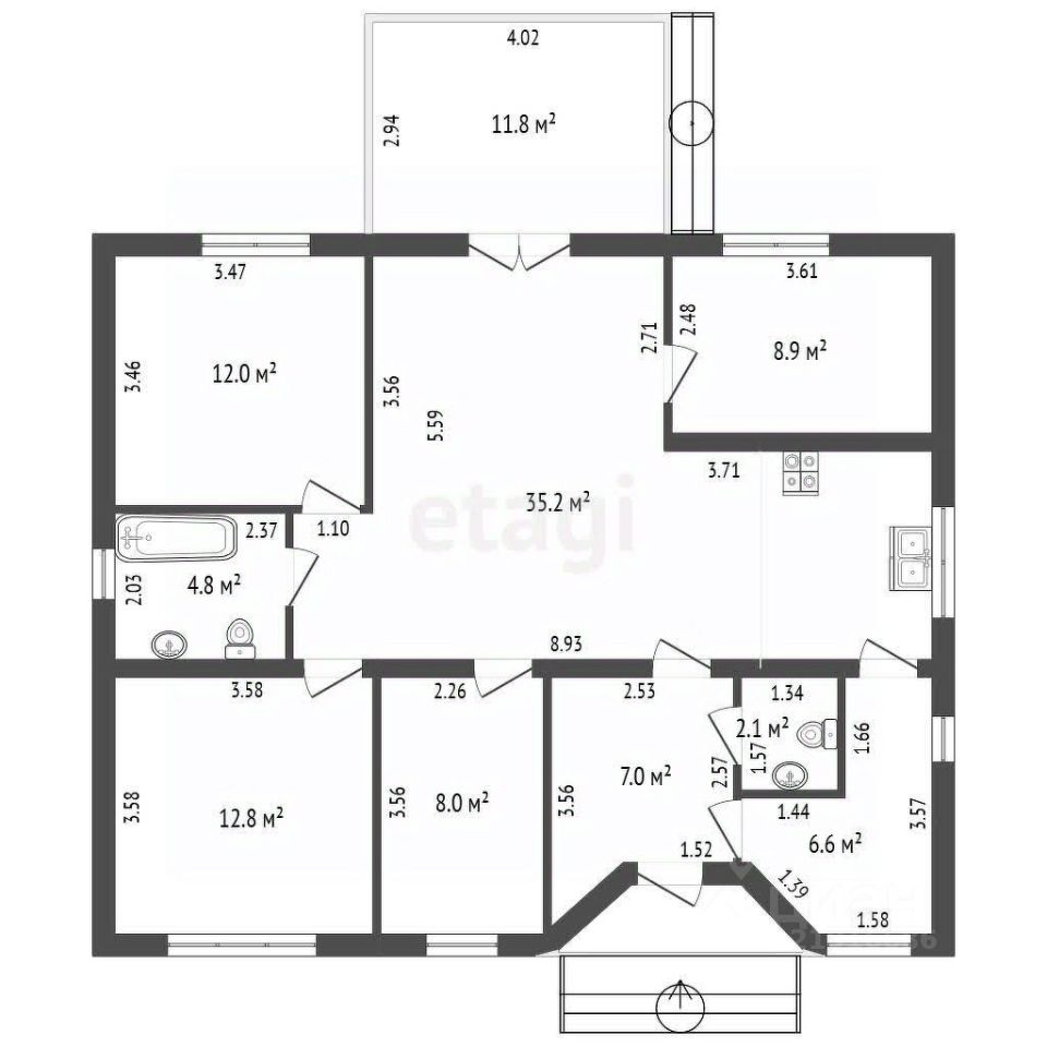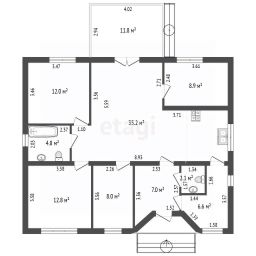 Кухня-гостиная, 3 комнаты, 2 санузла, постирочная, тех. помещение.