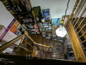Удобная резная лестница на второй этаж. Марокканские лампы и стеллажи для книг, создают уютную атмосферу.