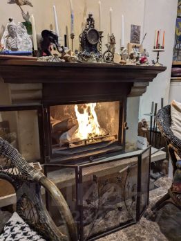 Кухня - гостиная 45 кв,м., холл 8 кв.м, гараж, санузел, терраса и самое главное прекрасный камин. Место притяжения.