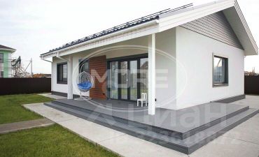 Можно построить из: пеноблоков, газосиликатных блоков, керамических блоков и по технологии ЛСТК. С гаражом и Эксплуатируемой кровлей.