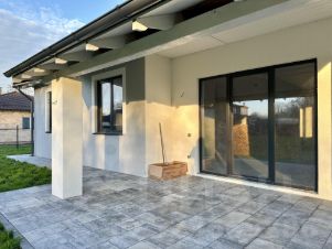 Положена плитка: по периметру дома, терраса, парковочные места.