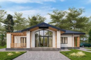 - Оконные конструкции: многочисленные большие окна наполняют дом естественным светом. Кухня-гостиная оснащена потрясающими панорамными окнами от пола до потолка, открывающими вид на природу и создающими атмосферу открытого пространства.