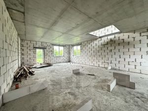 Дом в "чёрном ключе", без внутренней и наружной отделки.