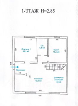 На 1 этаже - прихожая, кухня, гостевой санузел, спальня - кабинет,