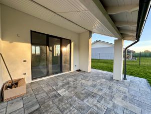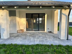 Положена плитка: по периметру дома, терраса, парковочные места.