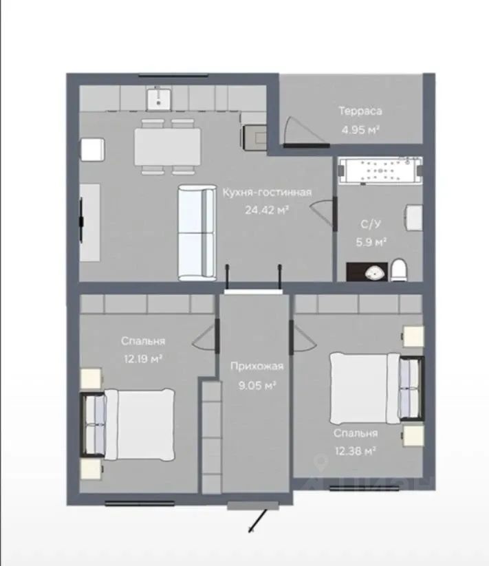 Кухня-гостиная - 24,42 -30,95 кв.м в зависимости от планировки