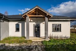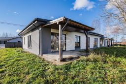 Дом построен в 2025 году из блочного материала с монолитными перекрытиями. Общая площадь — 169 квадратных метров, жилая — 44,8 квадратных метров. Кухня просторная — 49,2 квадратных метра. Дом включает три комнаты площадью 19,5, 12,6 и 12,7 квадратных метров соответственно, две совмещённые ванные комнаты и одну лоджию. На участке есть гараж, а также скважина для водоснабжения. Дом идеально подходит для круглогодичного проживания благодаря индивидуальному котлу отопления.