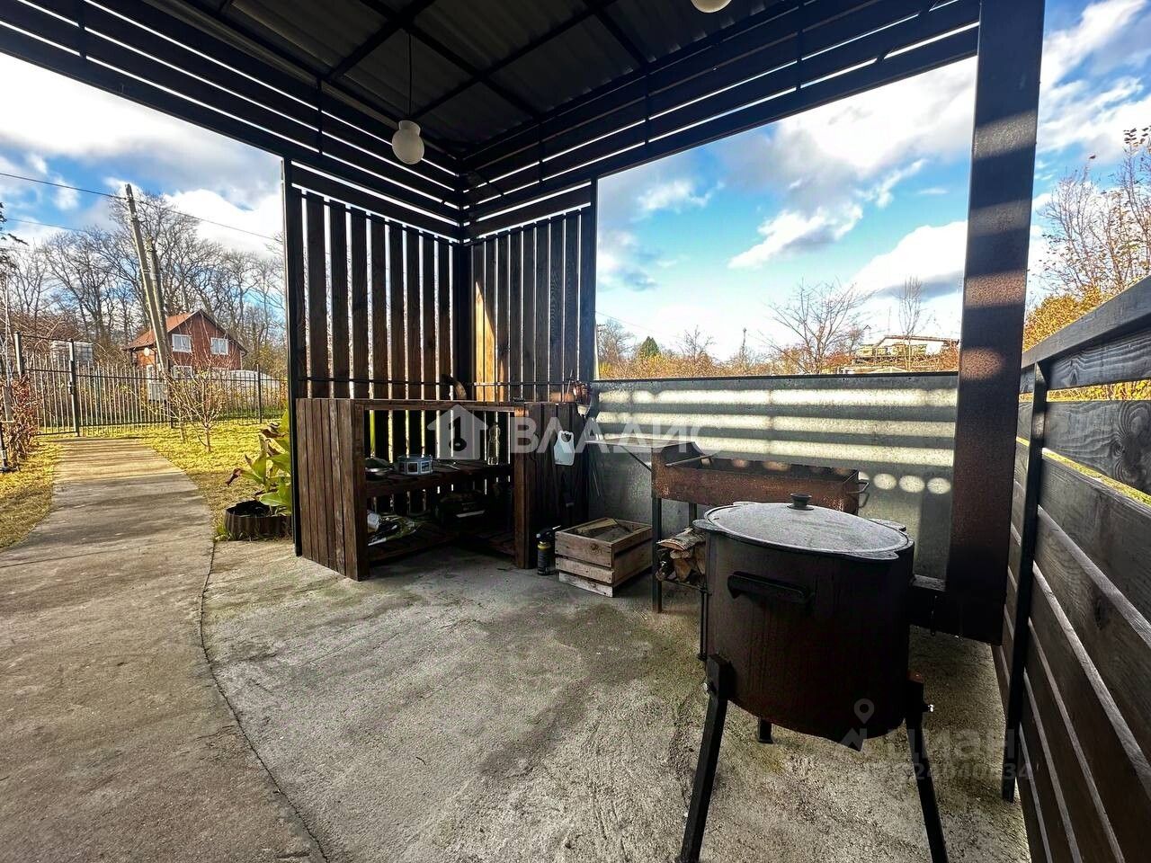 Огороженный участок, правильной формы, с воротами для въезда на территорию.