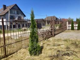 Участок ровный, сухой, обнесен забором по бетонному основанию, установлены откатные ворота и сделана входная группа.
