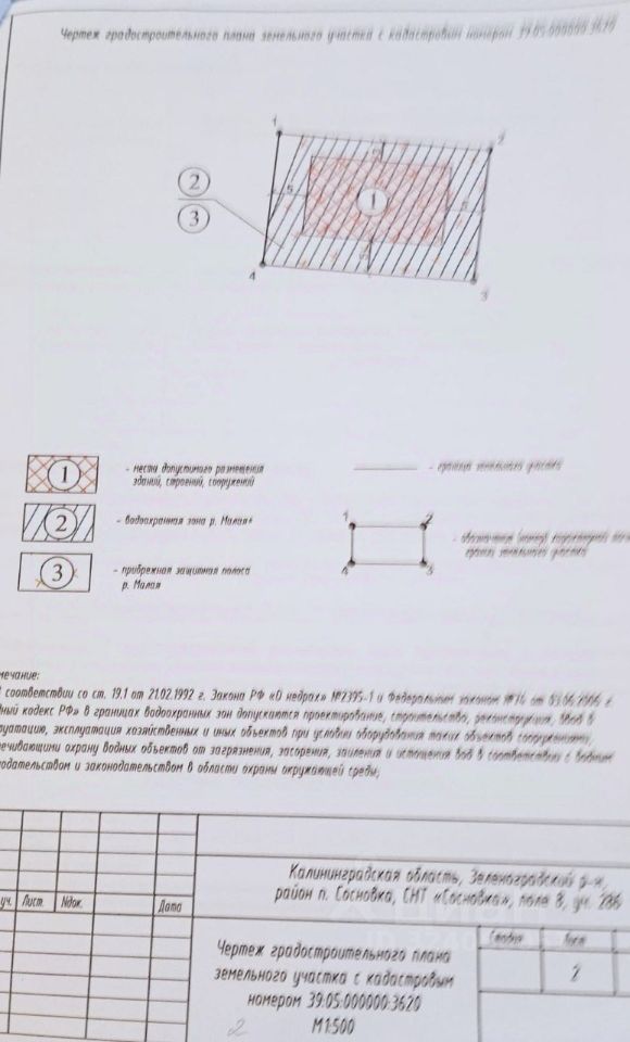 Кадастровый номер: 39:05:000000:3620;