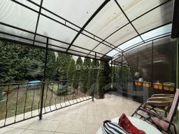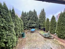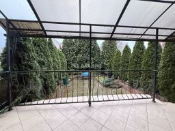 Выход на уютную террасу и участок с зоной барбекю полностью огорожен кованым забором и живой изгородью.