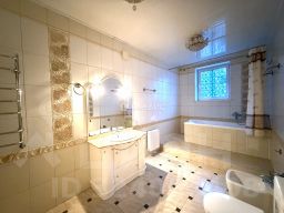 3 светлые спальни, гардеробная и современная ванная комната с окном.