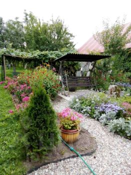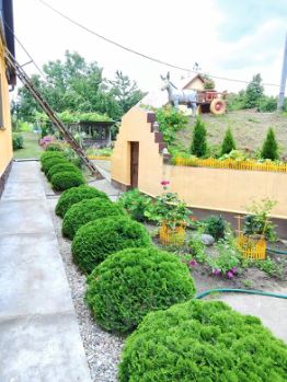 Придомовая территория облагорожена, есть огород, теплица, посажен сад плодовых пород деревьев: (Яблоки, груша, слива, алыча, грецкий орех, смородина, малина, виноград и т.д.), туи.