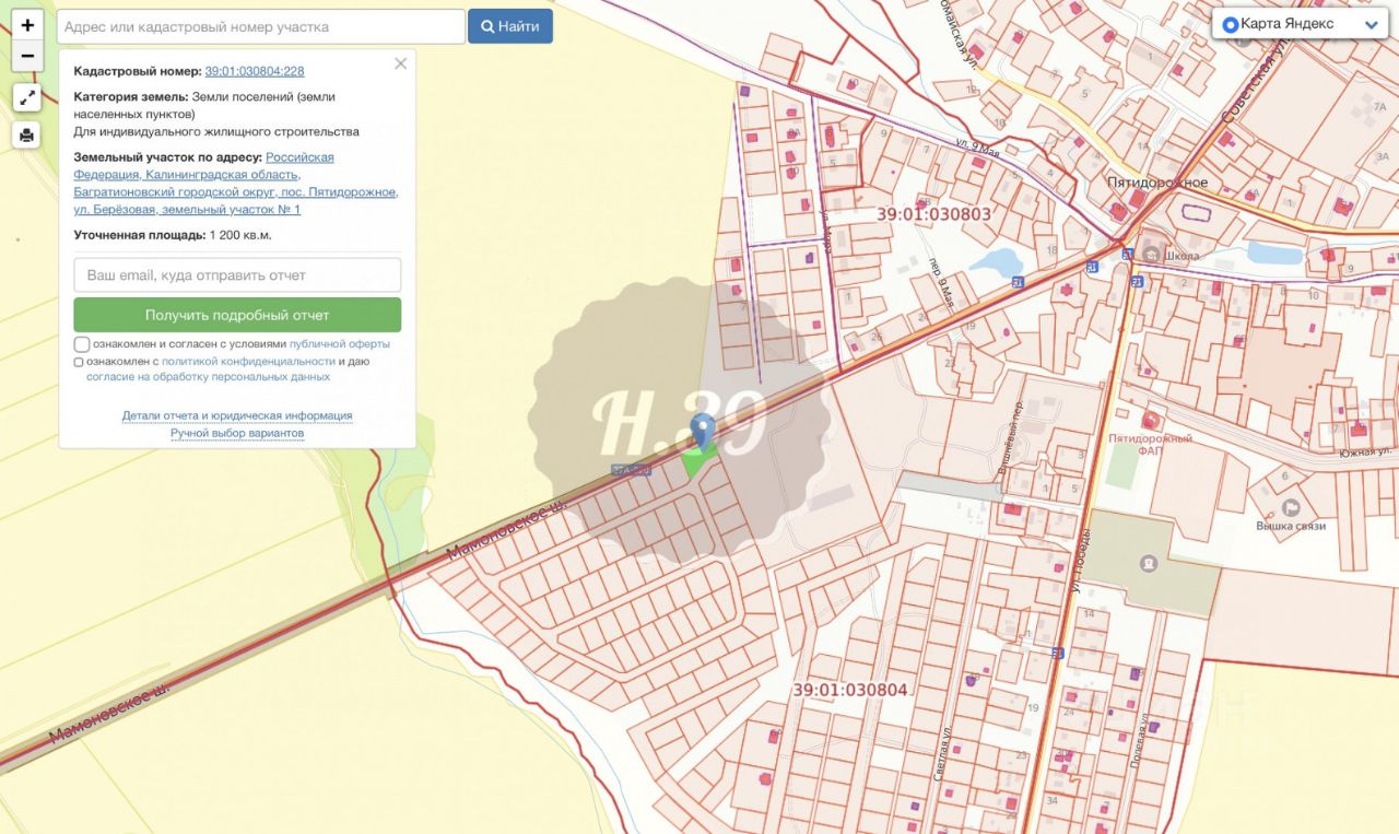 Арт. 126137145 Продаётся земельный участок площадью 12 соток в поселке Пятидорожное Калининградской области.