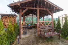 Территория дома прекрасно благоустроена. На участке вас ждет уютная баня для отдыха, просторная двухэтажная мастерская для ваших проектов, живописная беседка для приятных посиделок и функциональная теплица для выращивания свежих овощей и зелени.