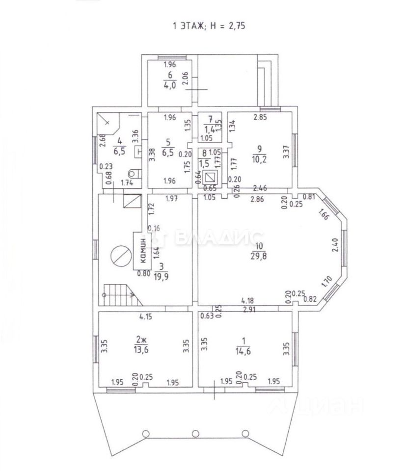 - Высота потолков: 2,75 м.