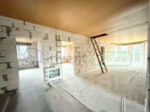 На первом этаже - чистовая отделка, белый ключ. Второй и цокольный этажи - черновая отделка. В комнатах кинута разводка на тёплые полы. На каждом этаже ванная комната с с/у.