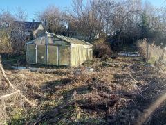 Участок полностью огорожен забором по периметру с удобными заездными воротами из профлиста.
