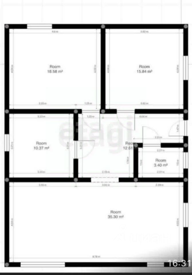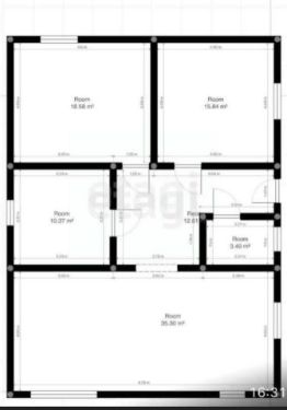 кухня-гoстиннaя - 36,2 м2 с потолком "второй свет", 2 спальни 16,9 и 16,8 м2, cанузел 7,4 м2, xолл 7,9 м2, прихожая 4,8 м2, тех помещение 2,8 м2.