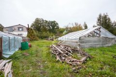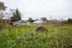 На участке расположен и зарегистрирован дом 89,4 м кв.м. из белого кирпича, можно сделать прописку, восстановить дом для проживания, либо снести. На участке имеются также две большие теплицы.