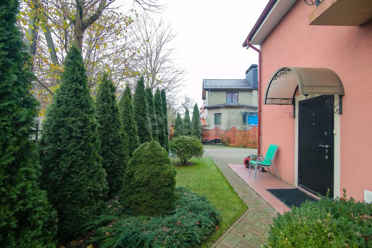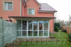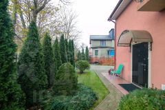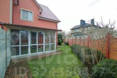 На участке в 6 соток расположены два таунхауса, земля оформлена, как придомовая территория, четко разделенная пополам между соседями заборчиком. Участок разработан, высажены плодовые и декоративные деревья, газон, предусмотрено место под мангал. Установлены откатные ворота, парковка на две машины. Дополнительным преимуществом является наличие просторной хозяйственной постройки - отличная система хранения для садового инвентаря.