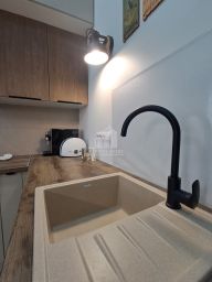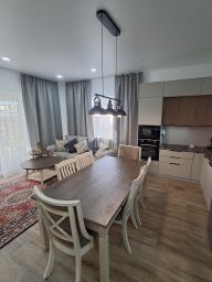 -Солнечная, светлая кухня- гостиная (38,2м²) с большими панорамными окнами и с выходом на террасу;