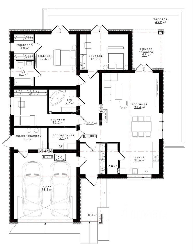 - 1 мастер-спальня (+ свой гардероб и санузел)