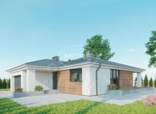 Можно построить из: пеноблоков, газосиликатных блоков, керамических блоков и по технологии ЛСТК. С гаражом и Эксплуатируемой кровлей.