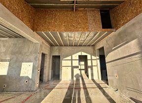 - Оконные конструкции: многочисленные большие окна наполняют дом естественным светом. Кухня-гостиная оснащена потрясающими панорамными окнами от пола до потолка, открывающими вид на природу и создающими атмосферу открытого пространства.