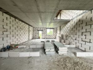 Дом в "чёрном ключе", без внутренней и наружной отделки.