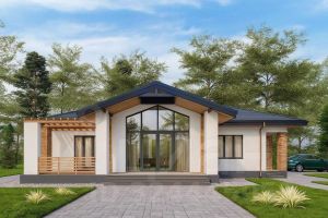 - Оконные конструкции: многочисленные большие окна наполняют дом естественным светом. Кухня-гостиная оснащена потрясающими панорамными окнами от пола до потолка, открывающими вид на природу и создающими атмосферу открытого пространства.